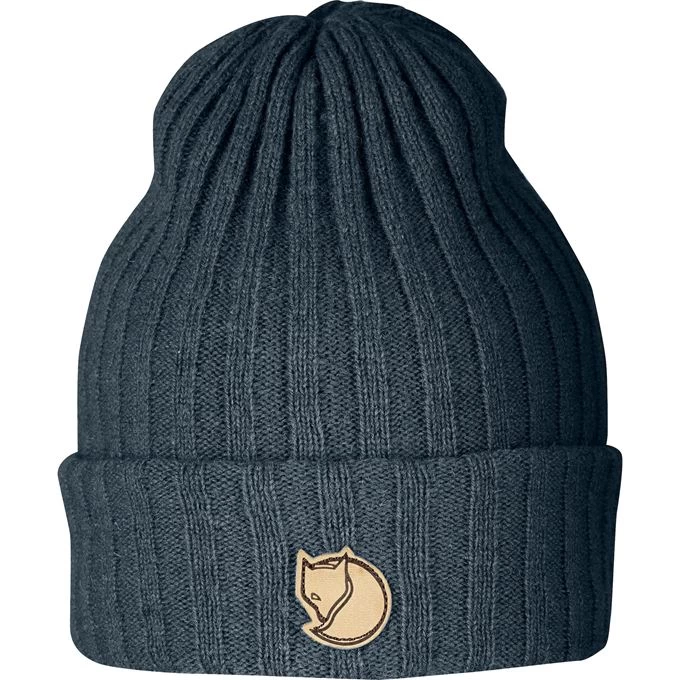 Dubbelgebreide muts van wol voor warmte en duurzaamheid. Dubbele omslag aan de onderzijde, geribd voor een comfortabele pasvorm. Poolvos op de voorzijde.