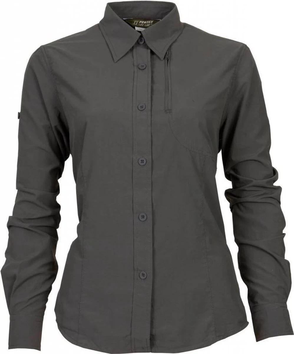 Reisshirt lange mouwen Futra, is een prachtig uitgewerkt outdoor overhemd voor dames. De futra beschermt je tijdens het beoefenen van talrijke buitensport activiteiten. Voor een stevige wandeltocht, hiking, nordic walking, fietstocht of tijdens je vakantie.